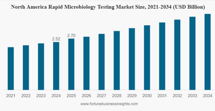 PUNE, MAHARASHTRA, INDIA, February 8, 2026 /EINPresswire.com/ -- The rapid microbiology testing market is gaining strong momentum as industries worldwide increasingly prioritize faster, accurate, and reliable microbial detection methods. Rapid microbiology testing refers to advanced techniques that significantly reduce the time required to identify and quantify microorganisms compared to traditional culture-based methods. These solutions are widely adopted across pharmaceutical manufacturing, biotechnology, clinical diagnostics, food and beverage testing, and environmental monitoring.According to Fortune Business Insights, the global rapid microbiology testing market size was valued at USD 6.95 billion in 2025. The market is projected to grow from USD 7.44 billion in 2026 to USD 13.34 billion by 2034, exhibiting a CAGR of 7.6% during the forecast period. This steady expansion reflects the growing need for efficient quality control, regulatory compliance, and patient safety across multiple end-use sectors.
